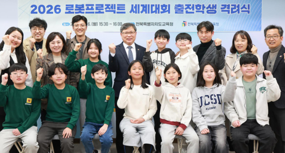 [굿모닝전북신문=한영희기자] 유정기 전북특별자치도교육감 권한대행이 16일 ‘2026 로봇 프로젝트 세계대회 FLL’에 한국 대표로 출전하는 학생들을 격려했다.