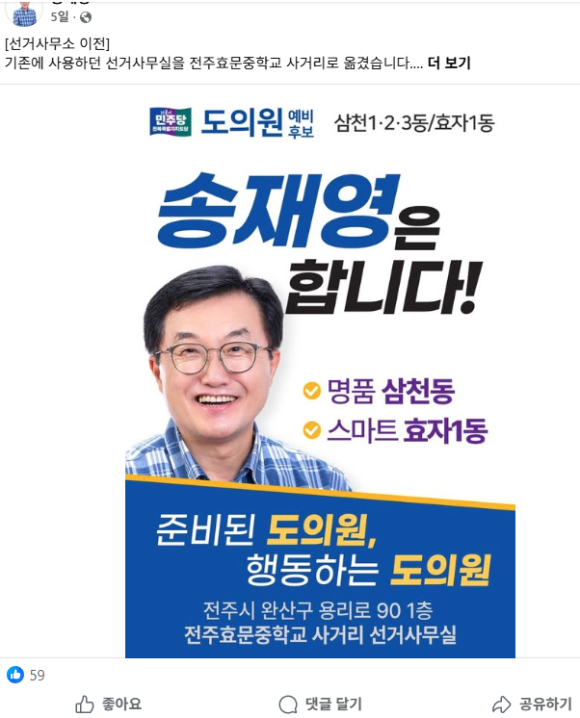 | 송재영의 페이스북 캪춰(사진_굿모닝전북신문) |