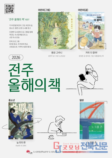 선정된 ‘2026 전주 올해의 책’은 올해 △100일 필사 △시민공모전 △저자 초청 강연 △가족 독서 골든벨 등 ‘제9회 전주독서대전’과 연계한 다양한 프로그램 진행 시 주제 도서 등으로 활용될 예정이다.