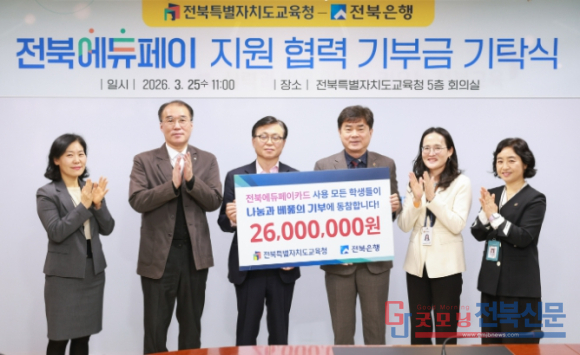 전북교육청과 전북은행은 25일 본청 5층 회의실에서 전북에듀페이 지원 협력사업 기부금 기탁식을 개최했다.