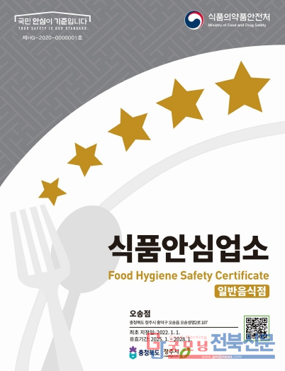 | ↑↑ 식품안심업소 지정증 |