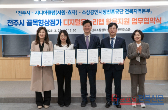 시는 25일 전주시지역소통협력센터 2층 컨퍼런스룸에서 전주서원시니어클럽과 전주효자시니어클럽, 소상공인시장진흥공단 전북지역본부와 ‘전주시 골목형상점가 디지털온누리앱 활용 지원’ 업무협약을 체결했다.