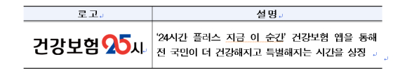○ 새롭게 선보이는 「건강보험25시」는 언제 어디서나 시간에 구애받지 않고 건강보험 서비스를 이용할 수 있다는 의미를 담고 있으며, 사용자 중심의 환경으로 대폭 개선되었다.