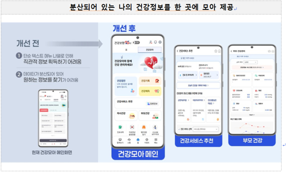 ○ 기존의 복잡한 메뉴 검색 대신 인공지능(AI)기술을 통해 국민 개개인에게 최적화된 서비스를 선제적으로 제공하는 ‘지능형 건강관리 플랫폼’ 구축을 목표로 하였다.