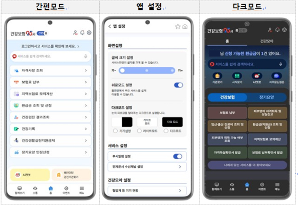 - 아울러 사용자의 시각적 편안함을 위한 ‘다크모드’와 ‘글자 크기 조절’ 기능을 적용하여 다양한 연령층이 누구나 쉽고 편리하게 모바일 서비스를 이용할 수 있도록 접근성을 극대화했다.