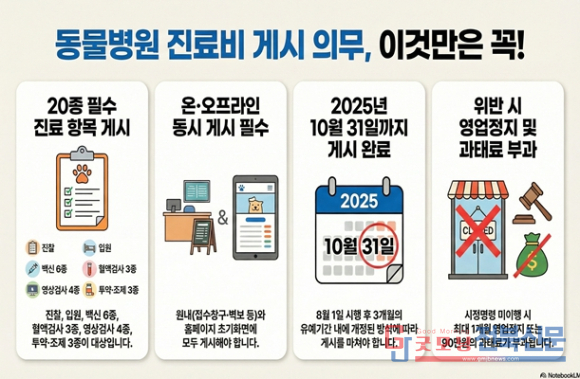 이번 점검은 2025년 8월 시행된 동물병원 진료비 게시제도의 적정 이행 여부와 전반적인 운영 실태를 확인하기 위해 추진된다.