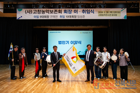 [굿모닝전북신문=최진수기자] 국가무형유산 고창농악의 보존과 전승을 이끌어 온 (사)고창농악보존회가 새 리더십과 함께 또 한 번의 도약을 선언했다. 제9대 구재연 회장이 임기를 마무리하고 제10대 임성준 회장이 바통을 이어받으면서, 고창농악의 뿌리를 지키는 전승 활동은 물론 지역 문화예술 전반의 활력 제고에도 기대가 모아지고 있다.