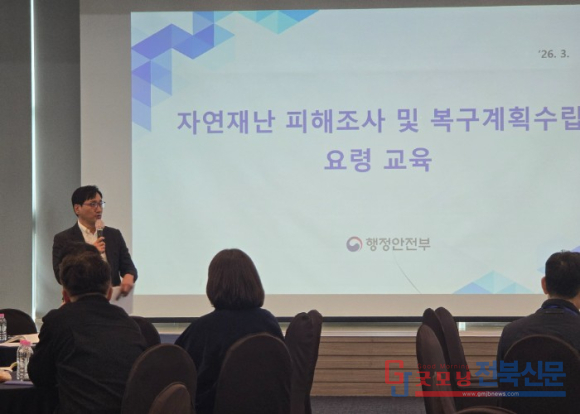 첫째 날에는 행정안전부 담당 사무관이 강사로 참여해 ▲여름철 자연재난 대응계획(호우) ▲자연재난 피해조사 및 복구계획 수립 요령 등 실무 중심 교육을 진행했다. 이어 전주대학교 이세원 교수의 재해영향평가 협의 관련 강의와 자연재난 분야 주요 현안 사항 공유가 이뤄졌다.