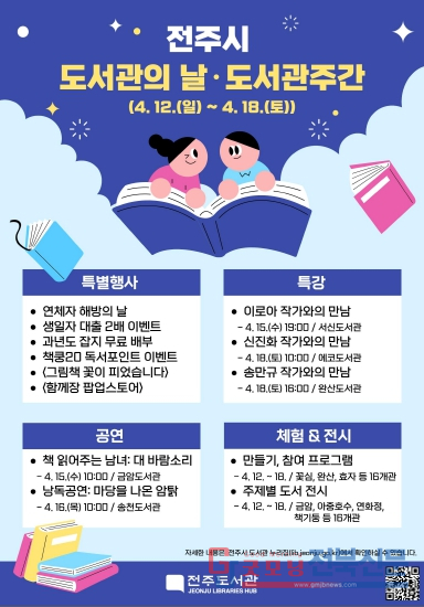 동시에 전주지역 도서관에서는 도서관 주간을 맞아 다채로운 체험 프로그램도 펼쳐진다.