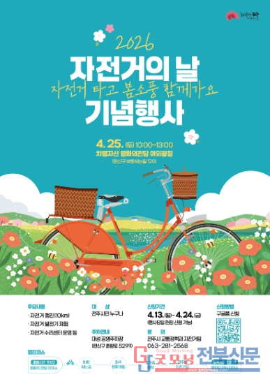 한편, 자전거의 날 기념행사는 자전거를 사랑하는 시민이라면 누구나 참여할 수 있으며, 자가용 이용자의 경우 행사장 인근 대성 공영주차장(완산구 춘향로 5299)을 이용하면 된다.
