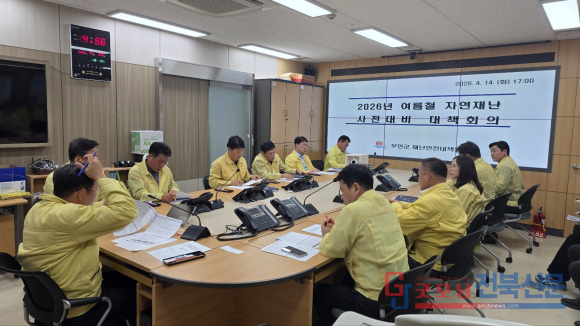 부안군은 지난 14일 정화영 부안군수 권한대행 주재로 여름철 자연재난 사전대비 대책회의를 열고, 부서별 대응 상황과 우기 전 중점 점검 과제를 집중 논의했다고 밝혔다.