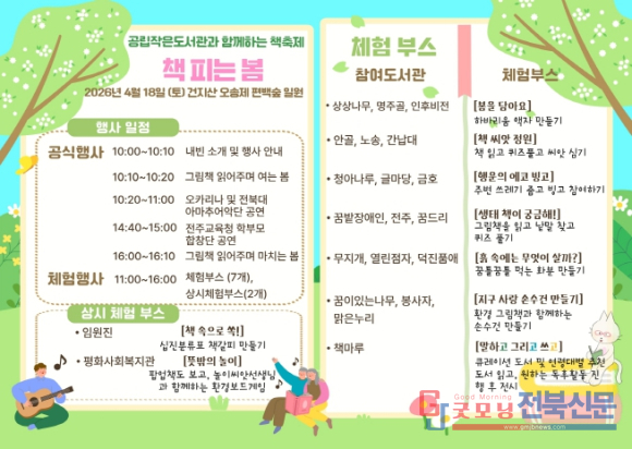 한편 이번 축제와 관련된 자세한 일정 및 프로그램 정보는 전주도서관 누리집 내 ‘작은도서관 소식’ 게시판에서 확인할 수 있다.
