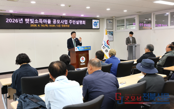 부안군은 지난 16일 군청 대회의실에서 읍·면 이장협의회장, 주민자치위원장, 마을대표 등 100여 명이 참석한 가운데 ‘2026년 햇빛소득마을 공모사업 주민설명회’를 개최했다고 밝혔다.