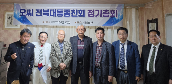 [굿모닝전북신문=오운석기자] 오씨 전북특별자치도 대동종친회(회장 오영열)는 22일 전주시내 대성식당에서 2026년도 정기총회를 개최했다. 이날 총회에는 종친회원 20여 명이 참석해 화합과 결속을 다지는 뜻깊은 시간을 가졌다.