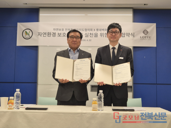 [굿모닝전북신문=한영희기자] 지난 22일 롯데백화점 별관 7층에서 자연보호 전북특별자치도협의회와 롯데쇼핑(주) 전주점과의 업무협약(MOU)이 있었다.