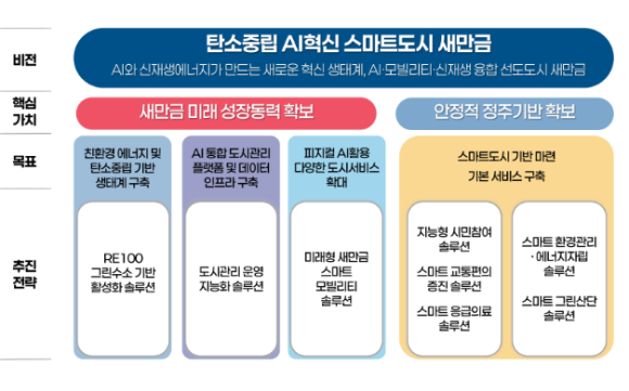 이번 계획은 새만금을 탄소중립과 인공지능(AI) 기반의 미래 혁신 도시로 조성하기 위한 중장기 전략으로, 글로벌기업 협업과 첨단기술을 기반으로 한 선도형 스마트도시 모델을 제시한 것이 특징이다.